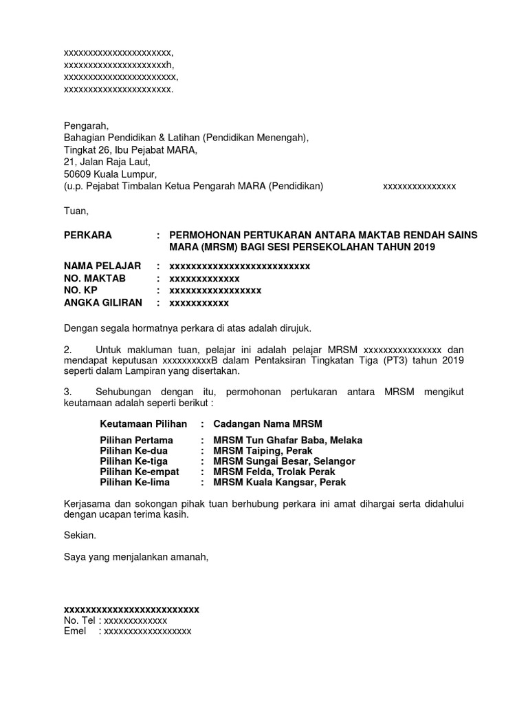 Harap maklumat ini dapat membantu ibu bapa dan calon-calon UPSR. Format gambar contoh surat. Kumpulan Contoh Surat Permohonan Pertukaran Sekolah Anak Terbaru 2019.